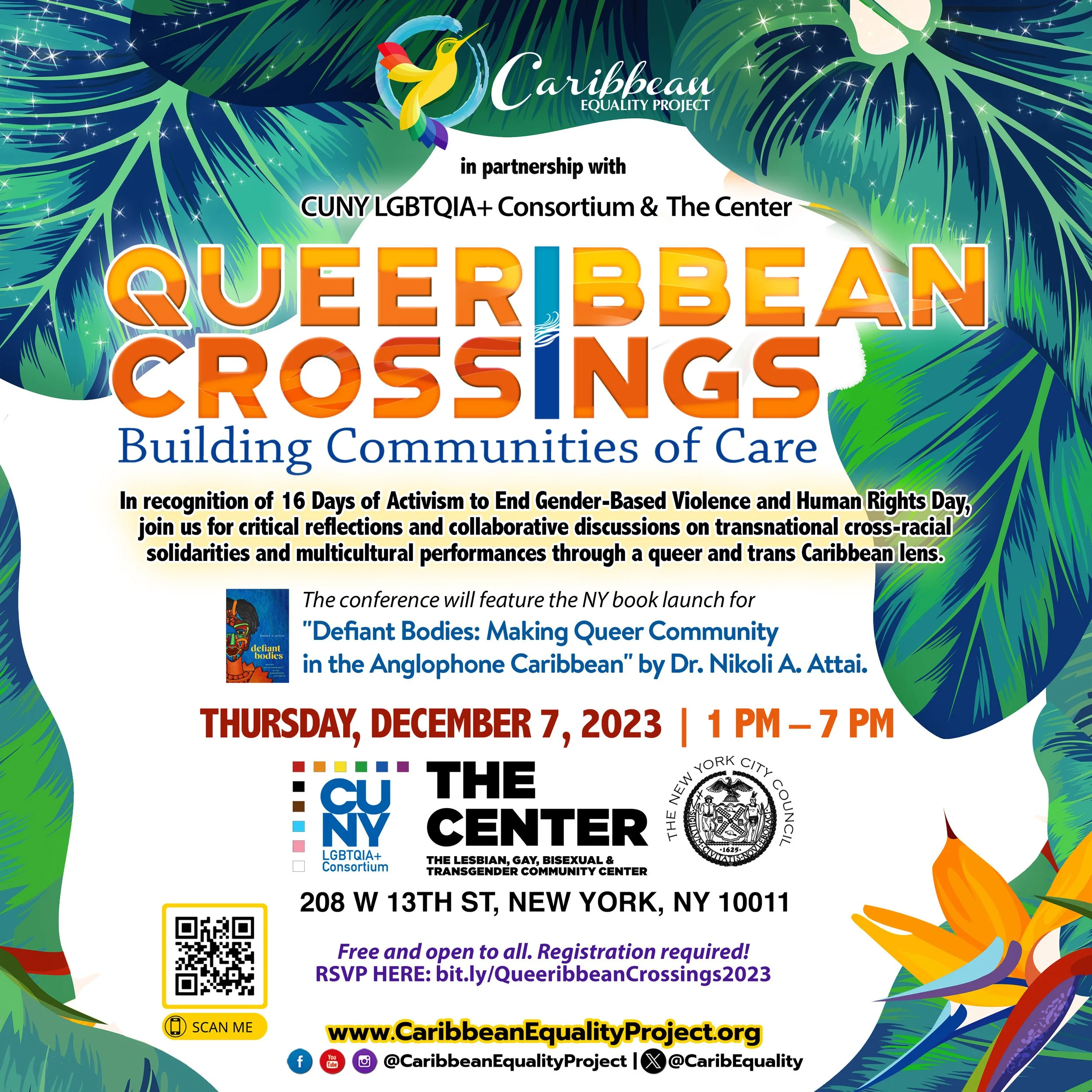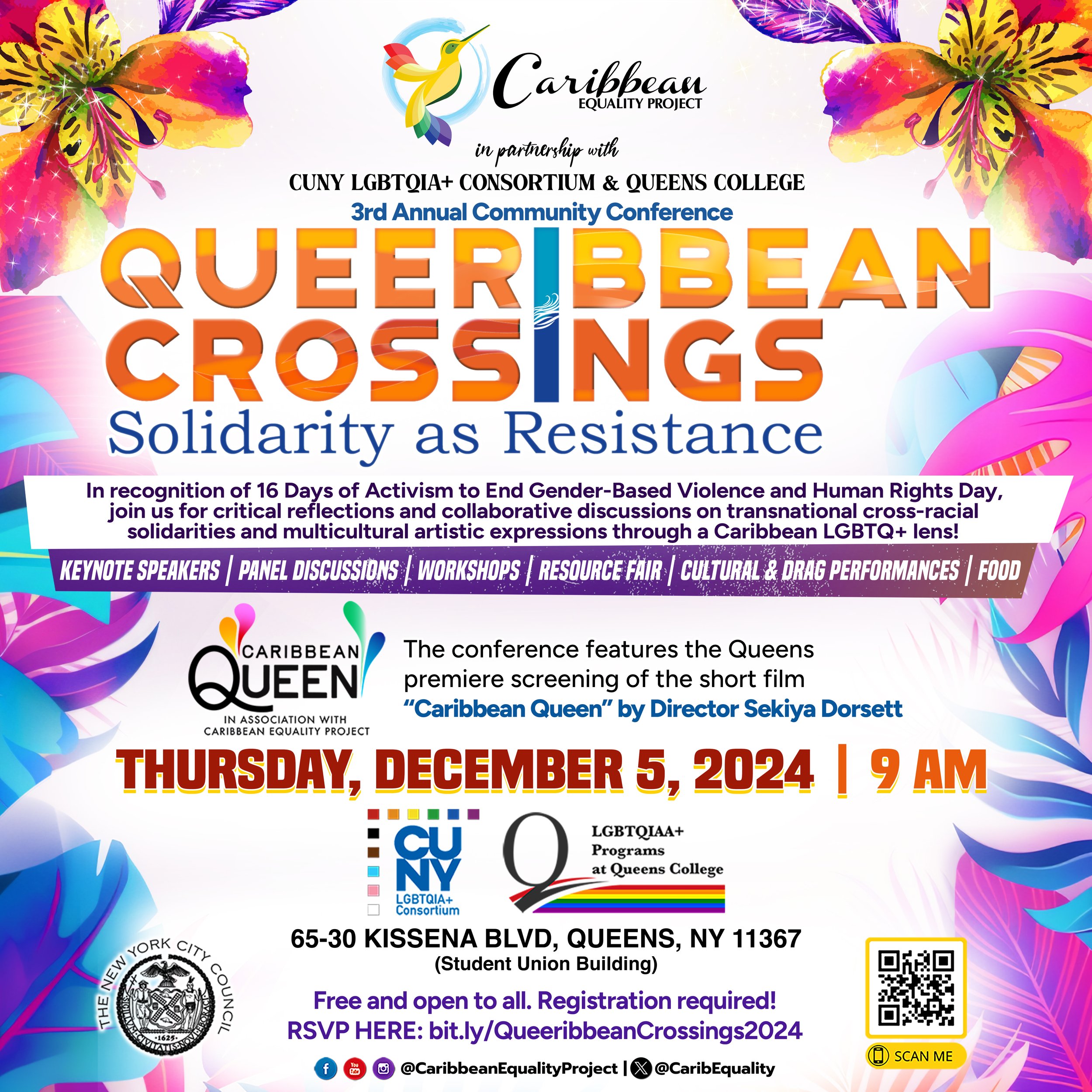 On Thursday, December 5, in recognition of 16 Days of Activism to End Gender-Based Violence and Human Rights Day, the Caribbean Equality Project will host its 3rd annual "Queeribbean Crossings" conference, themed "Solidarity as Resistance," in partnership with the CUNY LGBTQIA+ Consortium at Queens College, CUNY. To learn more about speakers, performers, and the conference schedule, click here.