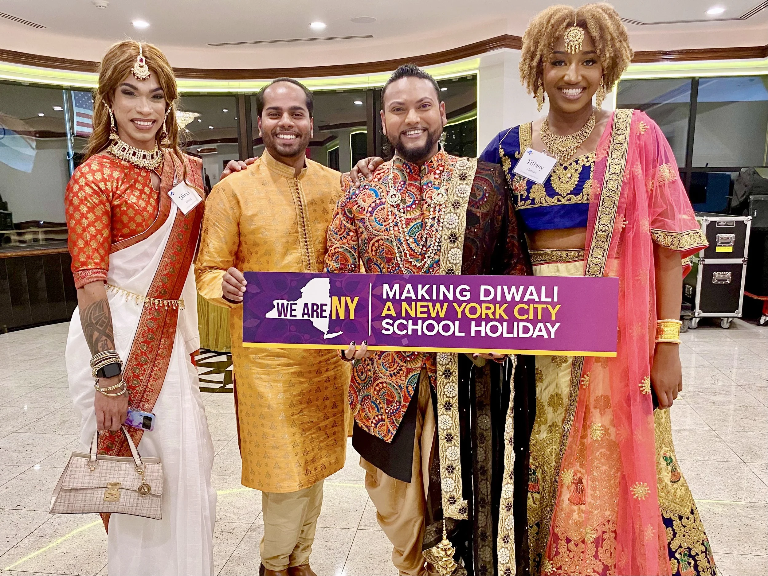 The campaign to make Diwali a recognized holiday in New York City public schools began over three decades ago at the New York City Council with a bill introduced by Council Member Daniel Dromm. Caribbean Equality Project leaders Ramdat Singh and Mohamed Q. Amin were leading voices for over 10 years. Their efforts were rooted in a community-centered approach, involving educational outreach, engaging high school students, and organizing press conferences, rallies, and legislative visits in Albany to advance this initiative.